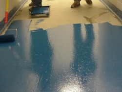 Это износоустойчивое покрытие. Аналогичное по составу и принципу нанесения к пропитке. Основная особенность краски по бетону — наносится на уже готовую поверхность, улучшает эстетические свойства помещения, что особенно важно в местах, где интенсивность движения не имеет промышленного характера.